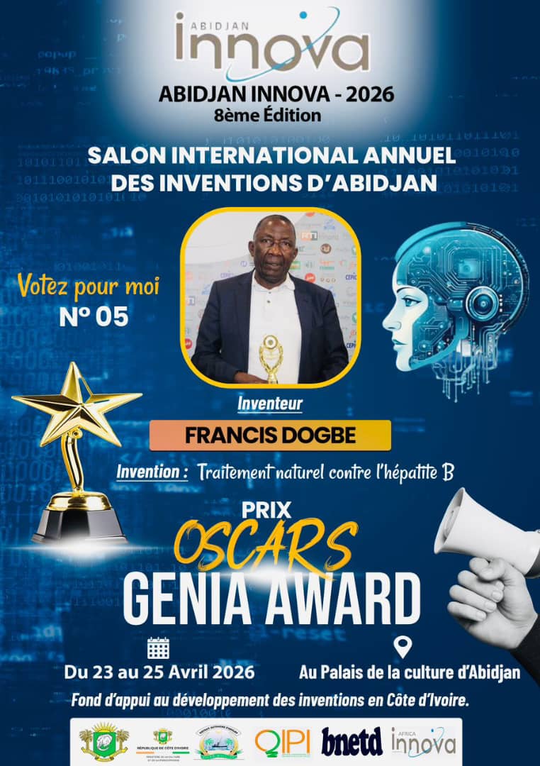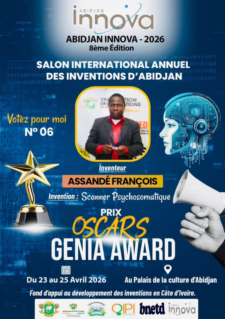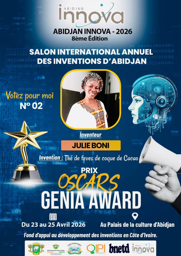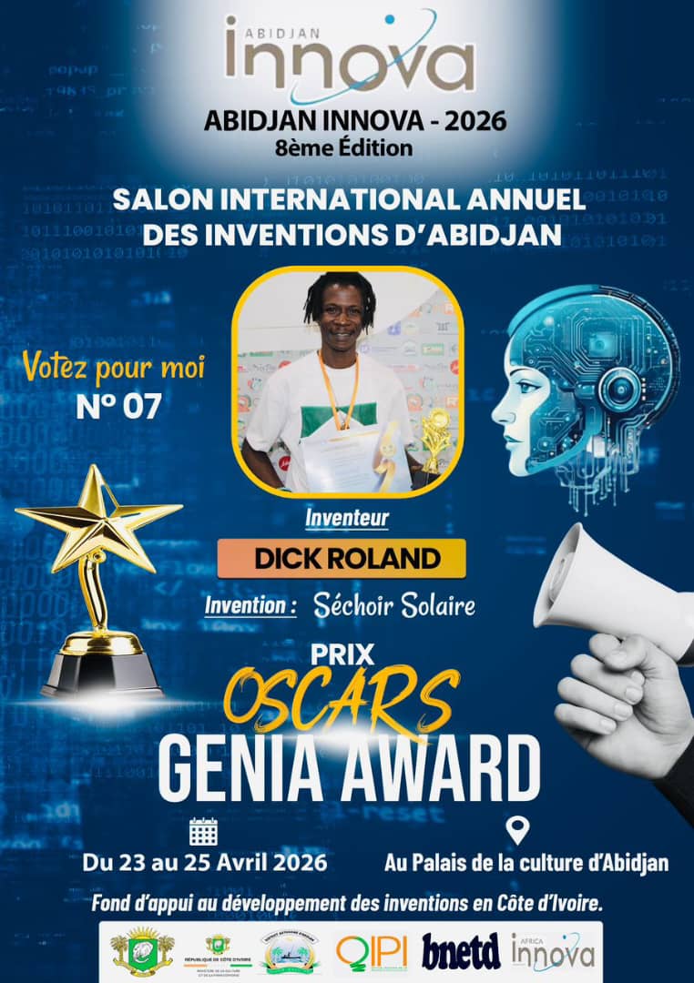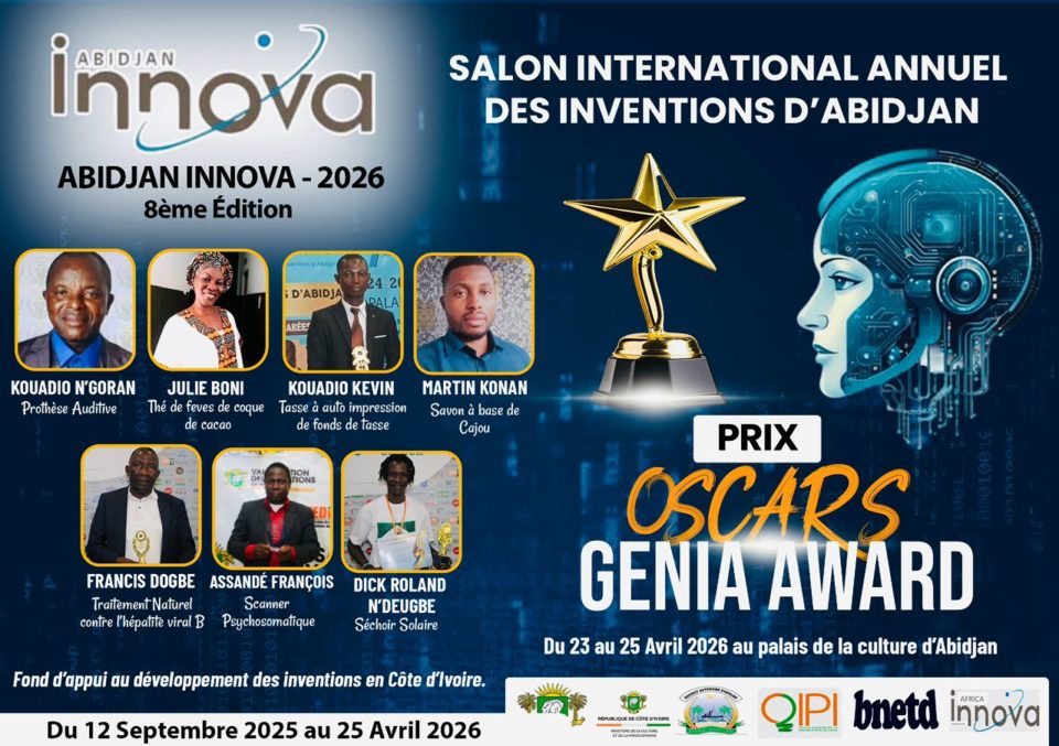 Du 23 au 25 avril 2026 se tiendra au Palais de la culture de Treichville, la 8e édition du Salon International Annuel des Inventions d’Abidjan (Abidjan Innova). Sept (7) inventeurs sont en ligne pour espérer décrocher le grand Prix Oscars Genia Awards 2026, qui récompense les meilleurs inventions de la Côte d’Ivoire.