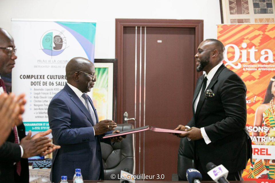 L’Administrateur Directeur Général du groupe Université Nord-Sud, Ibrahim Fama Diabaté commissaire général du QITAA (Quotient Intellectuel et Talents Artistiques d’Abidjan) et Le Directeur général du Palais de la Culture Bernard Dadié de Treichville, Koné Dodo ont signé ce jeudi 13 Novembre 2025 une convention de partenariat visant à promouvoir la culture, les talents artistiques et intellectuels d’Abidjan.