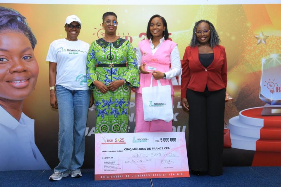 Partenaire engagé de l’événement, la SODECI a attribué le Prix SODECI à Madame Naomi Mbakam, fondatrice de Leelou Baby Food, pour la pertinence et la valeur sociale de son projet. Le prix lui a été remis par Madame Kougnon Prisca, Directrice du Contrôle Interne de la SODECI, marquant ainsi l’engagement constant de l’entreprise en faveur de l’entrepreneuriat féminin innovant.