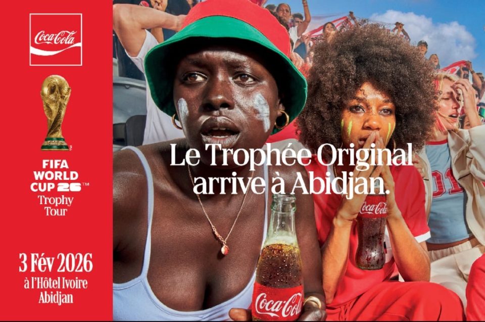 Coca-Cola invite les fans ivoiriens à découvrir le trophée le plus convoité au monde à l’approche de la Coupe du Monde de la FIFA 2026. La Tournée du Trophée Original de la Coupe du Monde de la FIFA par Coca-Cola fera escale à Abidjan le 03 février 2026, offrant aux passionnés de football en Côte d’Ivoire l’opportunité exceptionnelle de voir de près le Trophée Original de la Coupe du Monde de la FIFA.