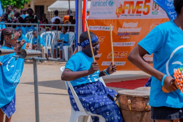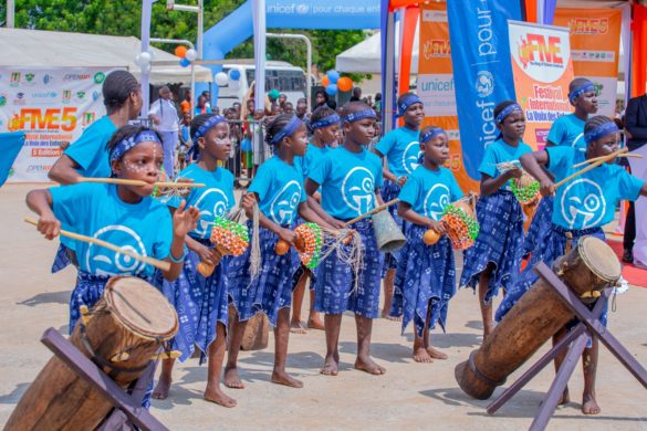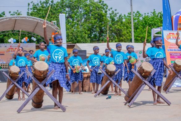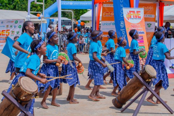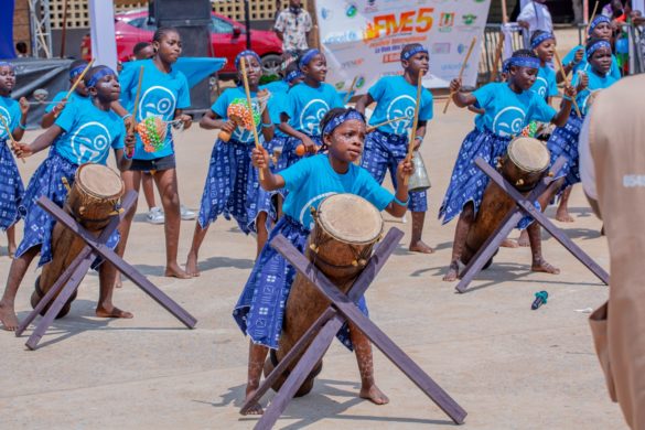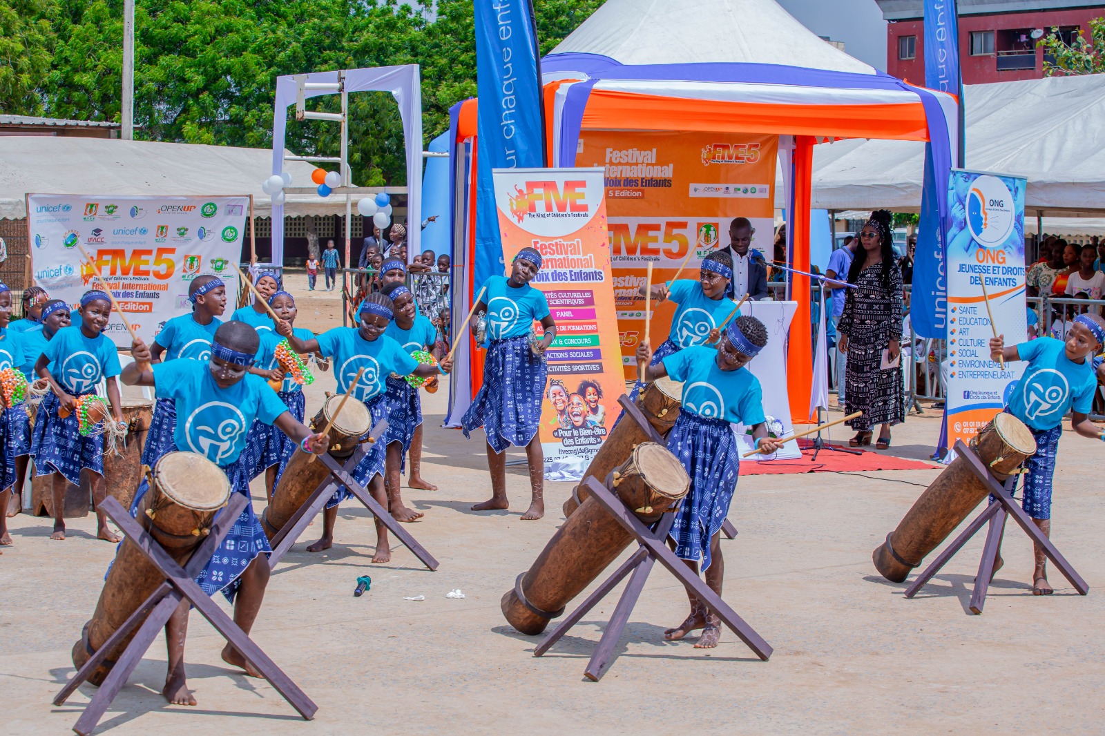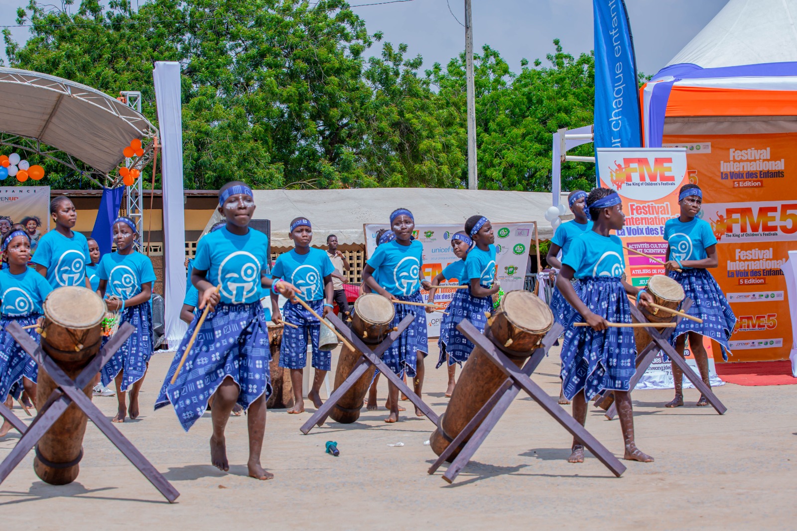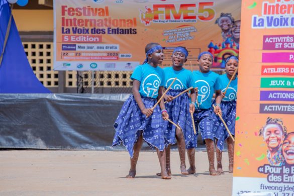 La troupe Mômes’Arts a fait une entrée remarquée lors de sa première apparition publique au Festival International La Voix des Enfants (FIVE) 2025, où elle a séduit le public par une prestation énergique mêlant danses traditionnelles, percussions et expression artistique.