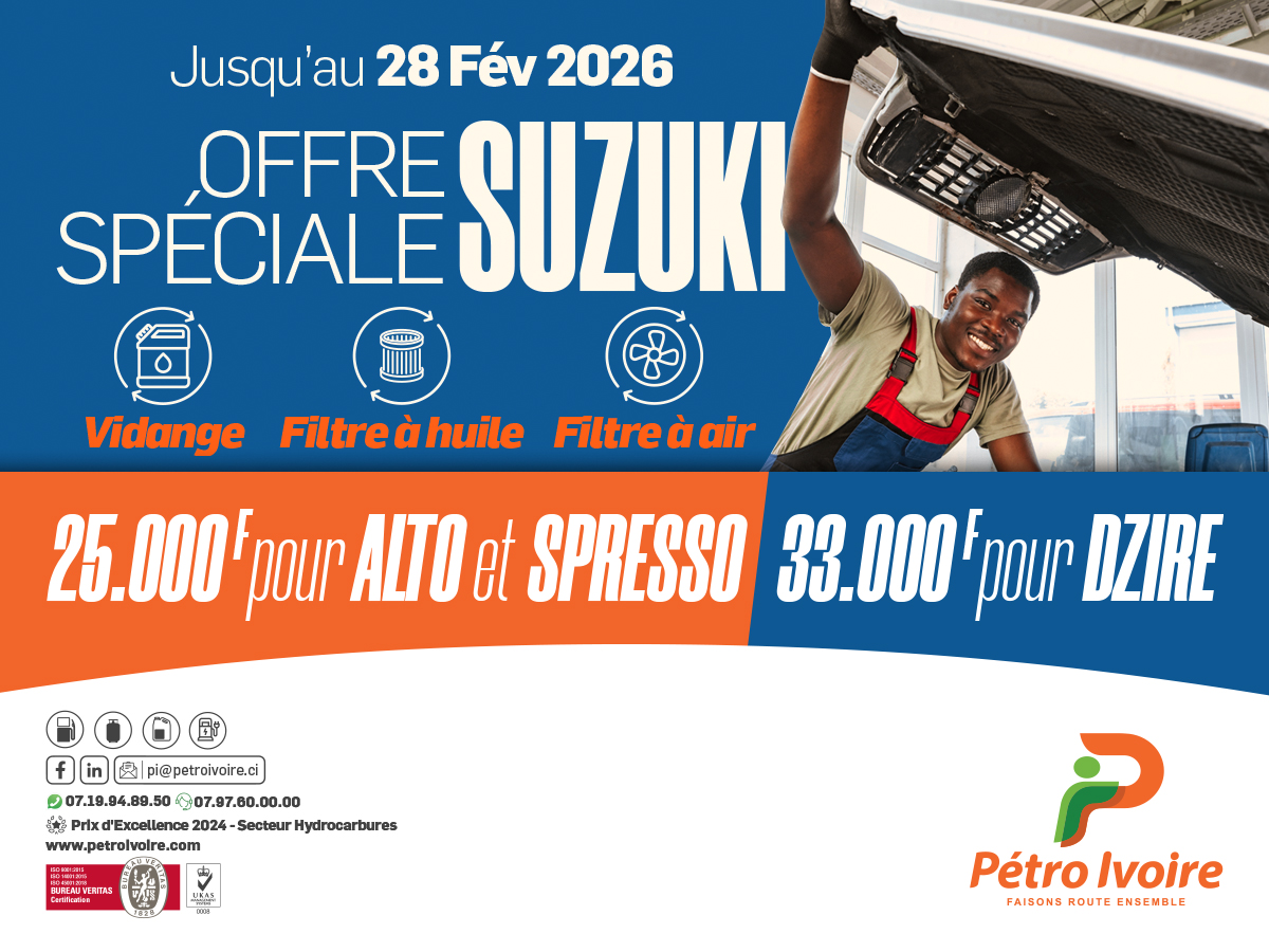 L’offre Suzuki se poursuit chez Pétro Ivoire !