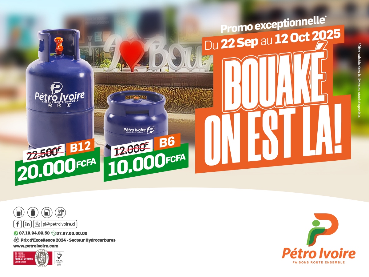Une belle opportunité pour remplir vos bouteilles de gaz Pétro Ivoire à prix réduit et célébrer ensemble cette nouvelle étape !