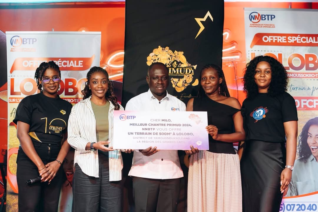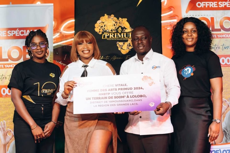Grâce au partenariat avec NNBTP les 24 lauréats du PRIMUD 2024 ont reçu chacun reçu un terrain de 500 m², tandis que le PRIMUD d’or, Roseline Layo a reçu une parcelle de 1 000 m², tous situé à Lolobo, localité stratégique située dans les encablures de Yamoussoukro.
