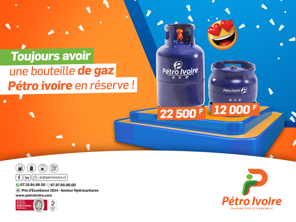 ActualitéPromo Pétro Ivoire : Faites la réservation de vos bouteilles de gaz octobre 15, 2025décembre 16, 202519632 Share0 𝗢𝗰𝘁𝗼𝗯𝗿𝗲 𝗲𝘀𝘁 𝗹𝗮 ! Ne te retrouve jamais à court de gaz. Assure-toi d’avoir une bouteille de gaz Pétro Ivoire en réserve !Désormais à 𝟭𝟮 𝟬𝟬𝟬 𝗙𝗿 𝗹𝗮 𝗕𝟲 𝗲𝘁 𝟮𝟮 𝟱𝟬𝟬 𝗙𝗿 la B12 dans toutes les stations Pétro Ivoire