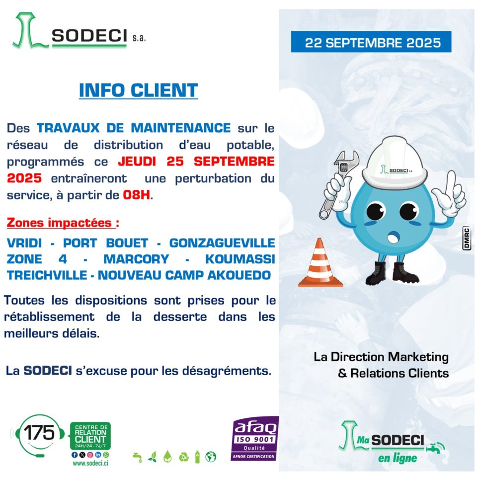 ActualitéSODECI : Des travaux de maintenances annoncés sur le réseau de distribution d’eau potable ce jeudi 25 septembre septembre 25, 2025septembre 25, 202540 Share0